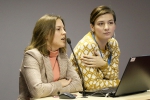 Заведующая Библиотекой роста и карьеры (БИРО) Надежда Орлова и заведующая отделом инновационно-методической работы Владимирской областной библиотеки для детей и молодёжи Ирина Скурлова рассмотрели особенности профориентационной работы, осуществляемой библиотеками.