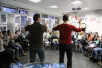 Чтобы все могли уйти с вечера с хорошим настроением, студентки Московского государственного института культуры Сураева Мария и Королева Мария в завершении его провели игру «Крокодил». В ней участвовали ребята с различными ограничениями здоровья. Они общались друг с другом, преодолевая все видимые и невидимые «барьеры». И это было самым главным.