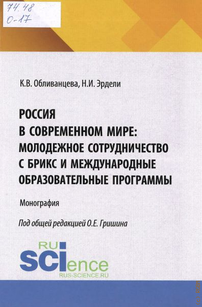 Обливанцева К.В., Россия в современном мире: молодежное сотрудничество с БРИКС и международные образовательные программы. монография — 2025