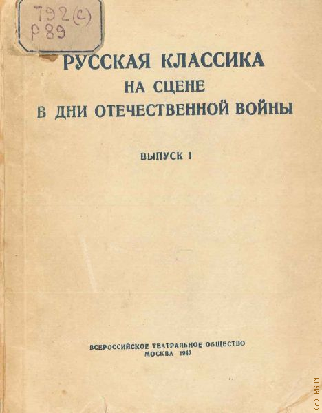 Русская классика на сцене в дни Отечественной войны. Материалы и исследования.Вып. 1 — 1947