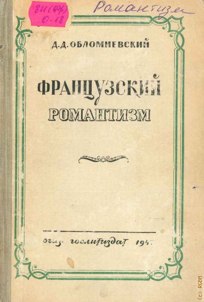 Обломиевский Д.Д., Французский романтизм. Очерки — 1947