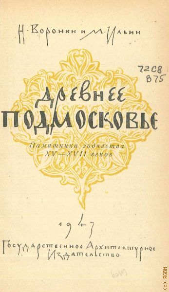 Воронин Н.Н., Древнее Подмосковье. Памятники зодчества XV - XVII веков — 1947