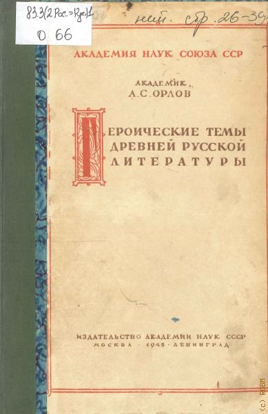 Орлов А.С., Героические темы древней русской литературы — 1945 (Научно-популярная серия. Акад. наук СССР)