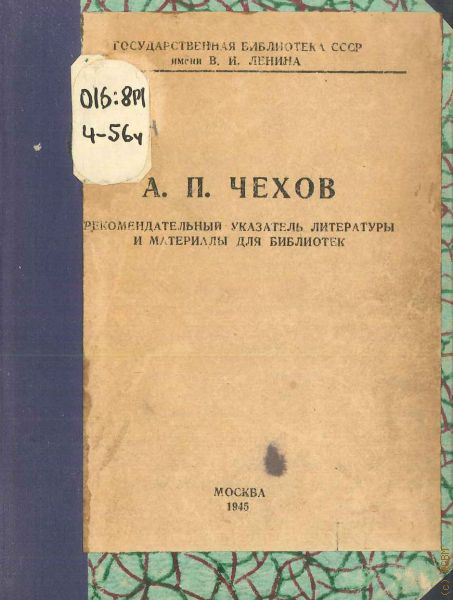 А.П. Чехов. Рекоменд. указатель лит-ры и материалы для библиотек — 1945 (Великие русские писатели. Гос. библиотека СССР им. В. И. Ленина Вып. 3)