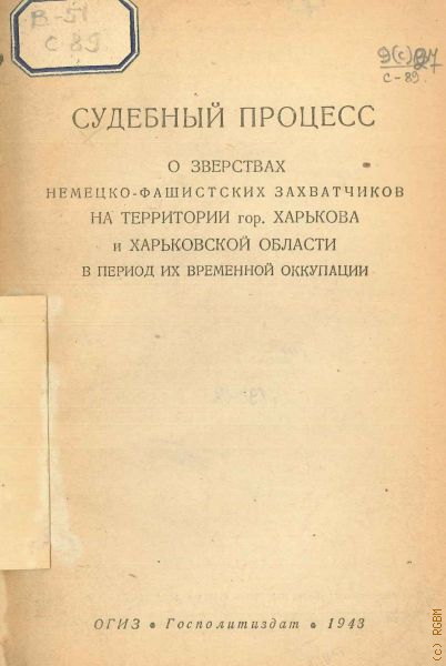 Судебный процесс о зверствах немецко-фашистских захватчиков на территории гор. Харькова и Харьковской области в период их временной оккупации — 1943