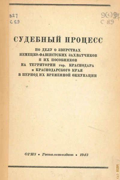 ![Судебный процесс по делу о зверствах немецко-фашистских захватчиков и их пособников на территории г. Краснодара и Краснодарского края в период их временной оккупации. [Дневник заседаний и др. материалы] — 1943](/searchcat/covers/RGUB-BIBL-0000889293.jpg) |
