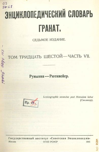 Энциклопедический словарь русского библиографического института Гранат. Т. 36. Ч.7: Румыния - Рютимейер — 1941