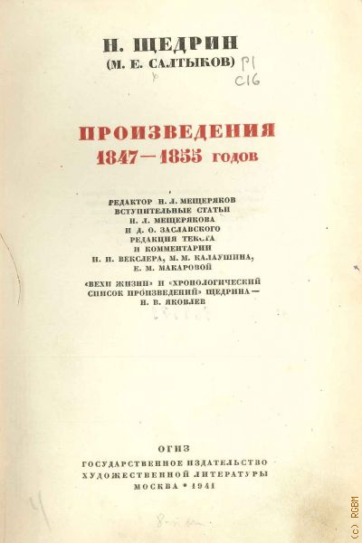 Салтыков-Щедрин М.Е., Произведения 1847-1855 годов. Полное собрание сочинений Т. 1 — 1941