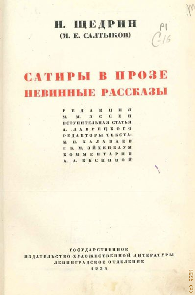 Салтыков-Щедрин М.Е., Сатиры в прозе. Невинные рассказы. Полное собрание сочинений Т. 3 — 1941