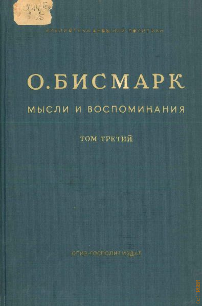 Бисмарк О. фон Ш., . Мысли и воспоминания Т.3 — 1941