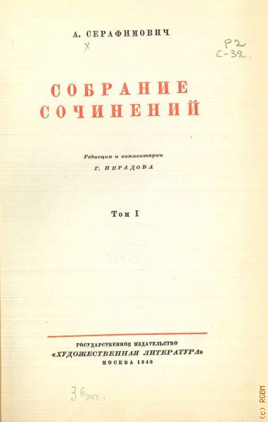 Серафимович А.С., Т.1. Собрание сочинений — 1940