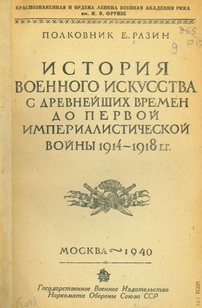 Разин Е.А., История военного искусства с древнейших времен до первой империалистической войны 1914-1918 г. г.Ч. 2: Военное искусство средневекового феодального общества VI-XVIII века — 1940