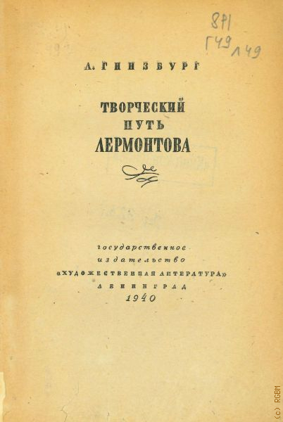 Гинзбург Л.Я., Творческий путь Лермонтова — 1940