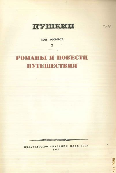 Пушкин А.С., Романы и повести. Путешествия. [Варианты и черновые материалы]. Полное собрание сочинений Т. 8. (2) — 1940