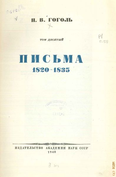 Гоголь Н.В., Письма, 1820-1835. Полное собрание сочинений Т.10 — 1940