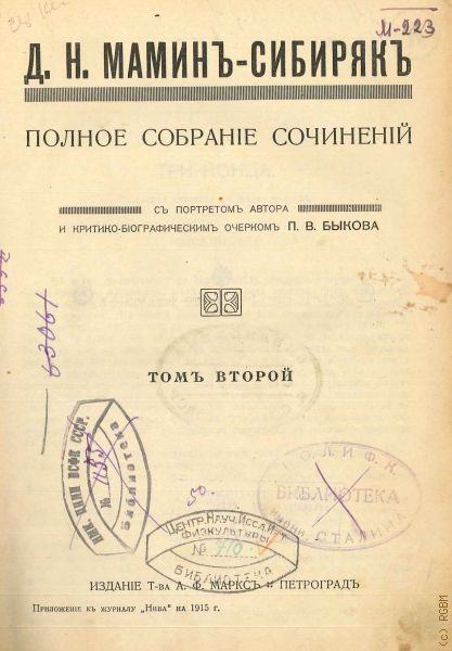 ![Мамин-Сибиряк Д.Н., Полное собрание сочинений Т. 2. С портр. и критико-биогр. очерком П.В. Быкова — [1917]](/searchcat/covers/RGUB-BIBL-0000656457.jpg) |