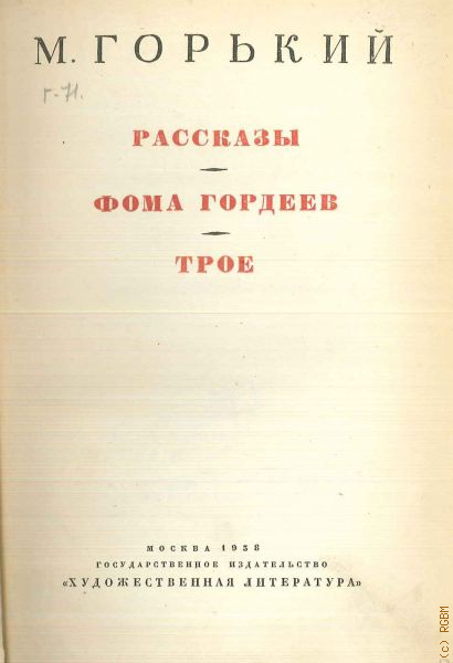 Горький М., Рассказы. Фома Гордеев. Трое. Собрание сочинений Т. 2 — 1938