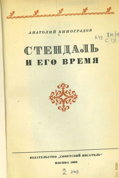 Виноградов А.К., Стендаль и его время — 1938