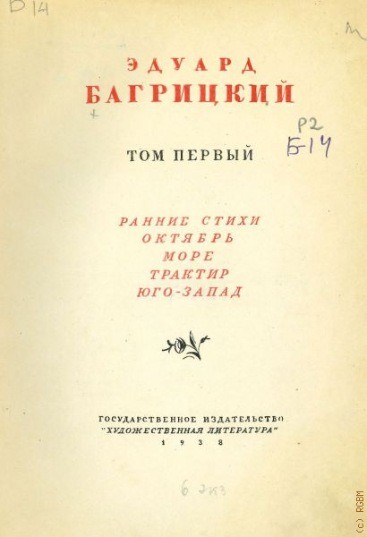 Багрицкий Э..Г., Собрание сочинений. В 2 томах. Т. 1 : Ранние стихи : Октябрь. Море. Трактир. Юго-Запад — 1938
