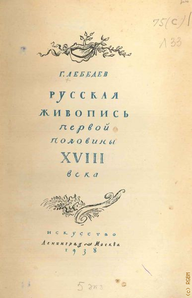 Лебедев Г.Е., Русская живопись первой половины XVIII века — 1938