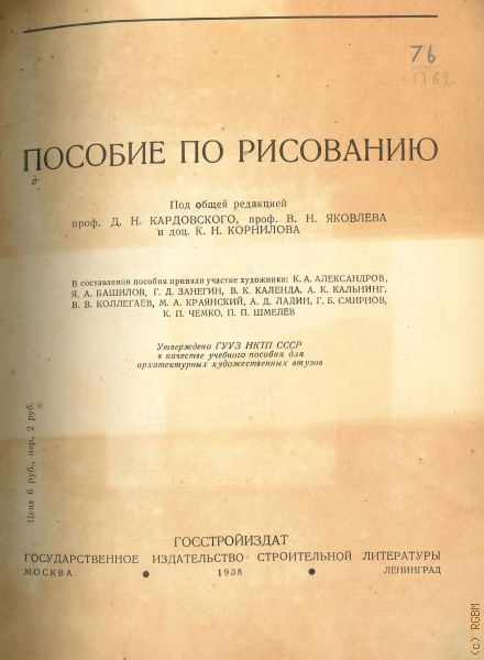 Пособие по рисованию. Утв. ГУУЗ НКТП СССР в качестве учеб. пособия для архитект. худож. втузов — 1938