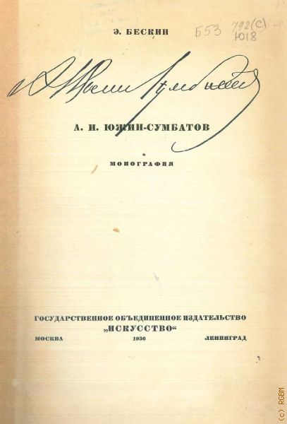 Бескин Э.М., А. И. Южин-Сумбатов. Монография — 1936