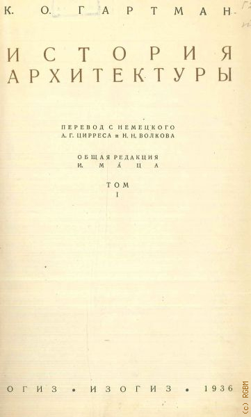 Гартман К.О., История архитектуры. Т. 1 — 1936