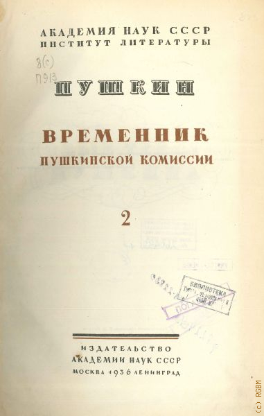 Пушкин. Временник Пушкинской комиссии, 2 — 1936