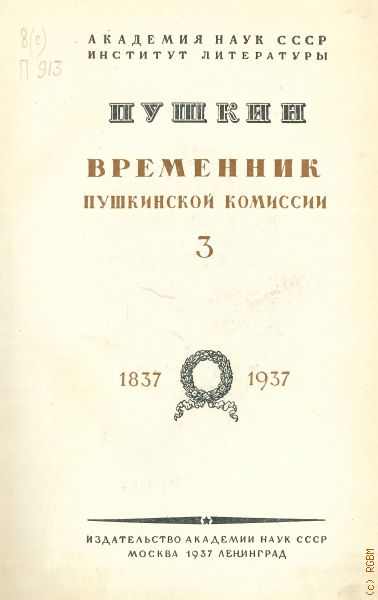 Пушкин. Временник Пушкинской комиссии, 3. 1837-1937 — 1936