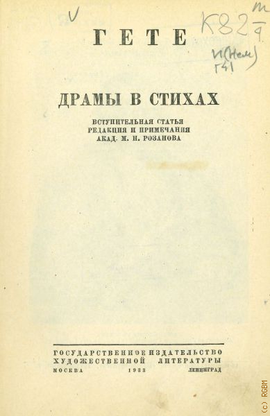 Гете И.В., Драмы в стихах — 1933 (Собрание сочинений в 13 томах. юбилейное изд.. Гете; под общ. ред. А. В. Луначарского, М. Н. Розанова; вступ. ст. А. В. Луначарского. Т.4)