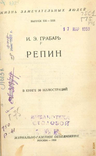 Грабарь И.Э., Репин. в книге 30 иллюстраций — 1933 (Жизнь замечательных людей. cерия биографий. вып. 21-22)