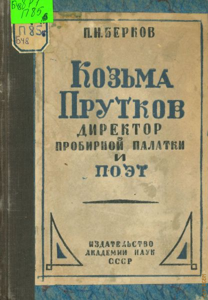 Берков П.Н., Козьма Прутков директор пробирной палатки и поэт. К истории русской поэзии — 1933