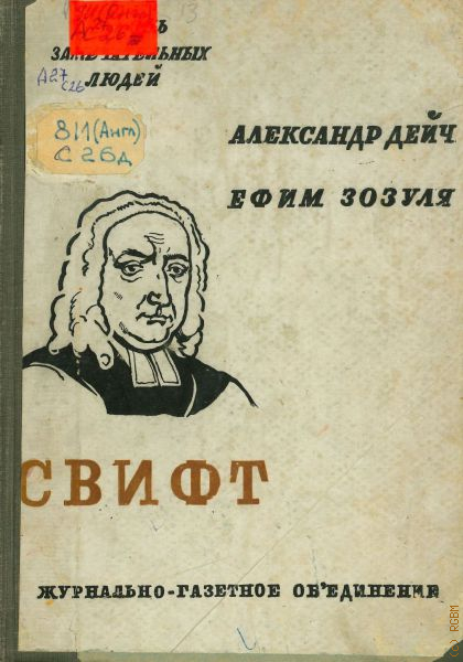 Дейч А.И., Свифт. в книге 7 иллюстраций — 1933 (Жизнь замечательных людей. Под общ. ред. М. Горького, Мих. Кольцова, А. Н. Тихонова. Ред. коллегия: М. Горький, акад. С. И. Вавилова, проф. Б. М. Гессен... и др.. Вып. 20) (Серия Биографий)