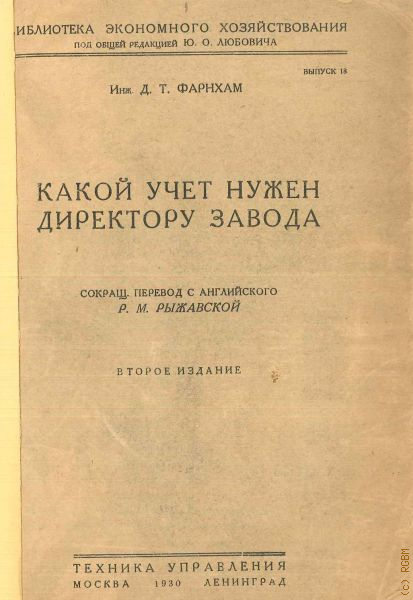 Фарнхам Д.Т., Какой учет нужен директору завода — 1930 (Библиотека экономического хозяйствования. Под общ. ред. Ю.О. Любовича. Выпуск 18)