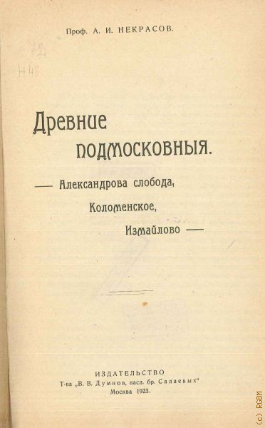 Некрасов А.И., Древние Подмосковныя. Александровская слобода, Коломенское, Измайлово — 1923