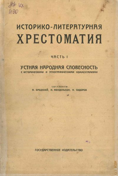 Историко-литературная хрестоматия. Ч. 1: Устная народная словесность с историческими и этнографическими комментариями — 1923