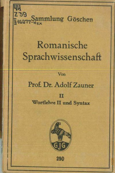 Zauner A., Romanische Sprachwissenschaft. II. Teil: Wortlehre II und Syntax — 1914 (Sammlung G¦schen. [Bd.] 250)