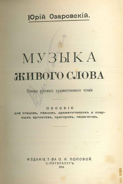 Озаровский Ю. Э., Музыка живого слова. основы русского художественного чтения. пособие для чтецов, певцов, драматических и оперных артистов, ораторов, педагогов — 1914