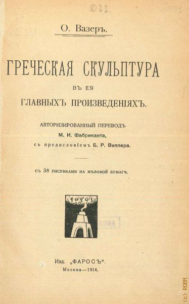 Вазер О., Греческая скульптура в ее главных произведениях — 1914 (Историко-культурная библиотека. — 6)