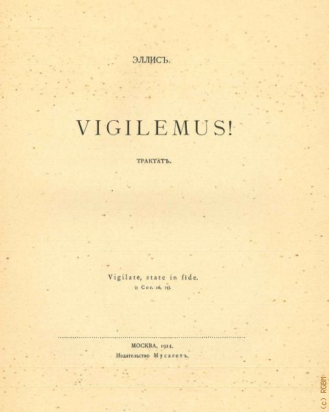 Кобылинский Л.Л., Vigilemus!. Трактат — 1914