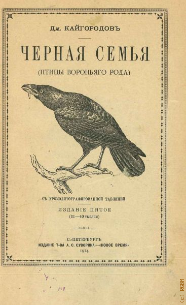 Черная семья. (Птицы вороньего рода) : Чтение для народа : (Чит. в нар. аудитории Пед. музея, в Соляном городке, в С.-Петербурге) — 1914