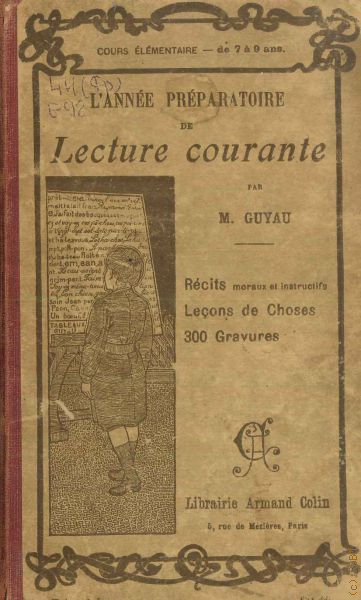 Книга для детей младшего возраста "Подготовительный курс беглого чтения", составленная французским философом Мари-Жаном Гюйо(1854—1888). Мари-Жан Гюйо родился 28 октября 1854 в Лавале. С детства проявлял разнообразные способности, занимался математикой и поэзией. В юности увлекся философией, читал Платона и Канта; особенно сильное впечатление произвела на него этика Эпиктета. Первым руководителем в его занятиях была мать, автор известных в ту пору сочинений по педагогике, одно из которых было удостоено премии Французской Академии, а затем его воспитанием занялся отчим, философ Альфред Фуйе. В 17 лет Гюйо была присвоена степень агреже по словесности. В 1873 Академия моральных и политических наук присудила ему премию за сочинение об утилитарной морали (от Эпиктета до современной английской школы). В 1874 Гюйо начал читать курс философии студентам лицея Кондорсе. В 1877—1885 сотрудничал в журналах «Revue philosophique» и «Revue des Deux Mondes», где публиковал статьи и фрагменты своих работ. В многочисленных философских сочинениях Гюйо дает обоснование ценностей — науки, морали, религии и искусства, — исходя из понятия жизни. Общий для всех «порыв жизни» нерасторжимо связывает человека с другими людьми, создавая основу социальной солидарности и согласия; им обусловлено чувство единства человека с космосом. Все мироздание, как и отдельный человек и общество в целом, движимо законом расширения жизни и возрастания ее интенсивности. В будущем свободное развитие жизненных сил может привести к возникновению новых форм жизни. Поскольку в жизни естественным образом согласуется точка зрения индивидуальная и коллективная, общественная, есть основание надеяться на создание общества будущего, где были бы сняты противоречия эгоизма и альтруизма и господствовала «мораль без обязательства и санкции», главный принцип которой — максимальное распространение жизни во всех направлениях, а значит, расширение общения людей, симпатии или альтруизма. В этом смысле одна из важнейших моральных максим — жить возможно более деятельной и интенсивной жизнью. Книга Набросок морали без долга и санкции (Esquisse d"une morale sans obligation ni sanction, 1885) оставила заметный след в истории идей: эту книгу, как и другую, Безверие будущего, высоко оценил Ницше. С представлениями Гюйо о морали связана концепция «безверия» (irreligion), которое должно прийти на смену современным религиозным формам (Безверие будущего, L"irréligion de l"avenir, 1887). Гюйо полагал, что время религии как системы догматов миновало, но безверие будущего — не антирелигиозная эпоха, не отрицание религии, а ее высшая ступень. Искусство, также являющееся расширением жизни, создается людьми, способными уловить жизнь природы и передать свои впечатления другим людям путем «симпатии». Такова же и функция философа; кроме того, философия, в отличие от наук, способных только констатировать факты и управляющие ими законы, может судить и об идеалах и целях людей, хотя ни одна отдельно взятая доктрина не в силах полностью выразить творческие возможности жизни. Многие идеи Гюйо, в том числе подчеркивание им бессознательной стороны в человеке, получили развитие в философии 20 в., в концепциях Ницше, Бергсона и др. Гюйо писал также стихи и драматические произведения