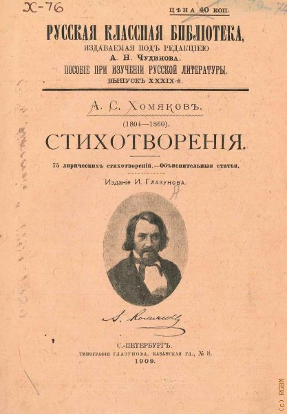 Хомяков А.С., Стихотворения : 75 лирич. стихотворений / А.С. Хомяков (1804-1860) — 1909
