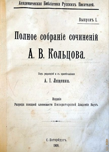 Кольцов А.В., Полное собрание сочинений А.В. Кольцова. Вып. 1 — 1909 (Академическая библиотека русских писателей. Вып. 1)