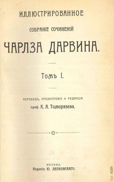 Содержание: Оглавление I тома: От редактора перевода; Значение переворота, произведенного в современном естествознании Дарвином. Статья К. Тимирязева; Автобиография. Перевод К. Тимирязева; Страница из записной книжки Ч. Дарвина 1837 г. ; Записка, представленная Ч. Дарвиным в Линеевское общество в 1858 г.; Происхождение видов