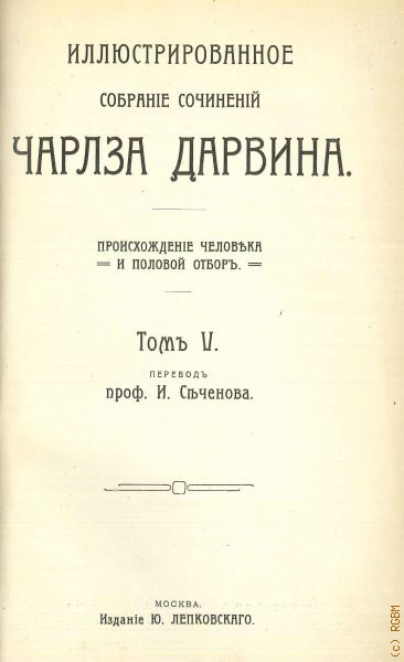 Дарвин Ч., Иллюстрированное собрание сочинений Чарлза Дарвина. Том 5: Происхождение человека и половой отбор — 1908