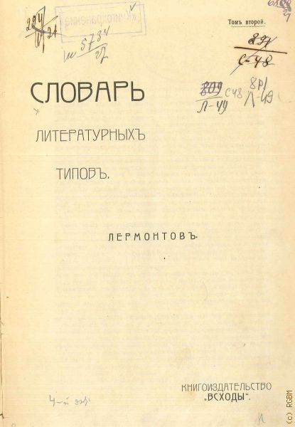 Литературные типы Лермонтова — 1908 (Словарь литературных типов. Т. 2 [Вып. 3]: Лермонтов)