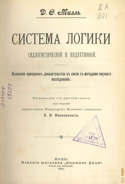 Милль Д. С., Система логики силлогистической и индуктивной. Излож. принципов доказательства в связи с методами науч. исслед. — 1900