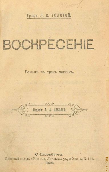 Толстой Л.Н., Воскресение. Роман в трех частях — 1900