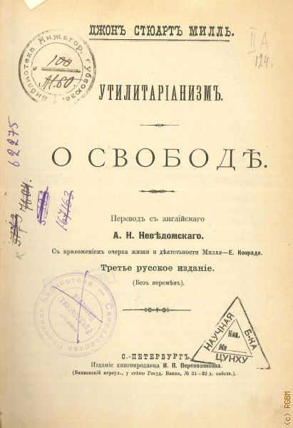 Милль Д. С., Утилитарианизм. О свободе. С прил. Очерка жизни и деятельности Милля. Е. Конради — 1900